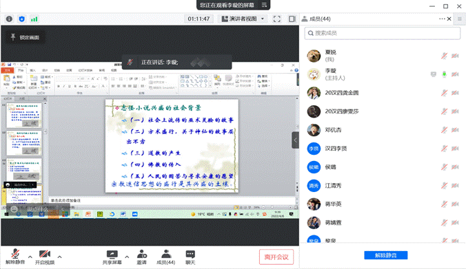 第六周,应疫情防控需要,改为线上授课。总体来看,各课程都按照今年会线上教学要求,采用腾讯会议、QQ群语音通话、学习通等方式完成线上教学工作。教学情况良好,教师们均能提前进入直播间调试设备。教学组织到位,整体教学秩序良好。