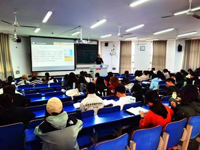 306教室是黄立平教授上的《申论写作》课,汉文2021级4班应到48人,实到47人。黄老师作为我院返聘教授,上课依然一丝不苟,同学们听得也非常认真。