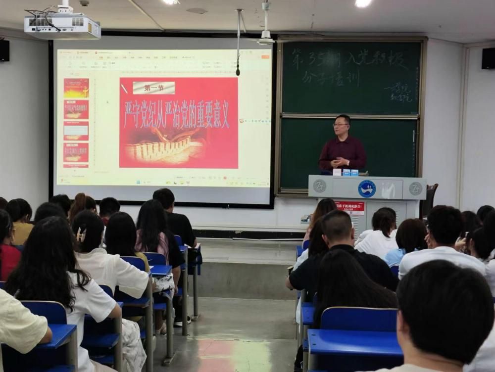 2024年5月16日,文学院和数学与金融学院在致远楼220教室联合开展了第35期入党积极分子培训班第一次课程。本次党培课程为《党章党规党纪》,由文学院党总支书记尹钟宏担任主讲人,从党章党规党纪在党的建设中的核心地位,以及作为入党积极分子应当具备的基本素质和要求两个方面展开。
