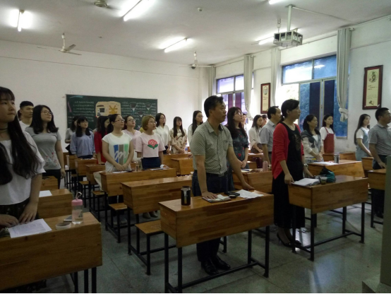 2017年5月16日下午3:00,文学院汉语言文学专业学生党支部纳新大会于致远楼214教室举行。此次支部纳新大会邀请了文学院党总支书记钟巧灵教授、文学院院长黄立平教授、李夫泽老师、罗主宾老师、唐祖敏老师、吴晓燕老师、叶红老师、左玉洁老师以及支部29名学生党员以及6名发展对象参加会议。