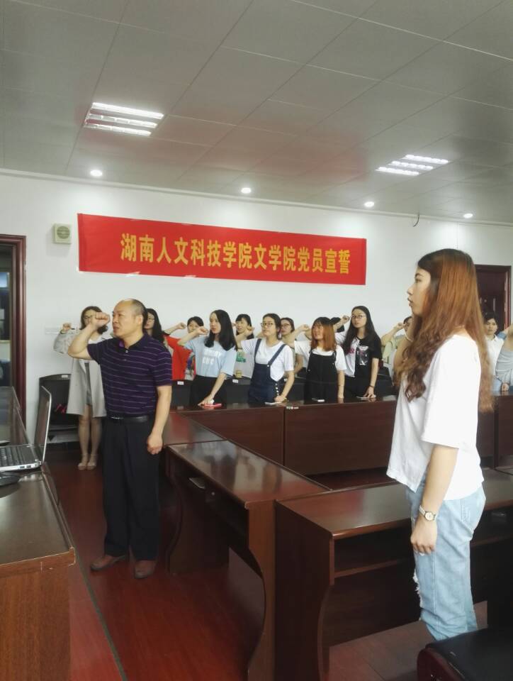 6月1日上午10点,今年会文学院2017年度入党宣誓仪式在致远楼213会议室隆重举行。参加此次活动有文学院党总支副书记刘道锋博士、汉语言文学专业党支部书记左玉洁老师及今年刚转正的学生党员。