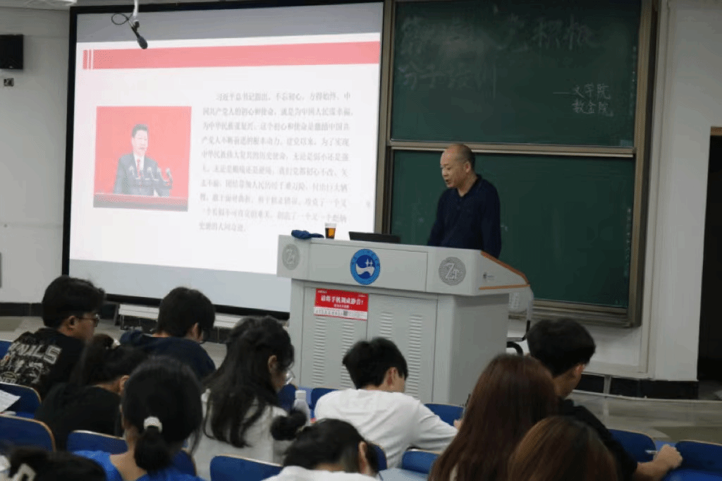 为加强入党积极分子理论知识锻炼,提高政治觉悟,使其对党的认识更加具体深刻,2023年11月25日晚上,文学院和数学与金融学院诚挚邀请了刘道锋教授在致远楼220教室为两院入党积极分子主讲入党积极分子第34期培训班第二课。