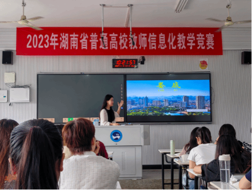肖珊珊老师课前准备充足,她以娄底城市IP的展示和分析入手,首先以“一谈到娄底,你会想到什么?”这一互动问答引入课堂,高效地激发了学生的学习兴趣。