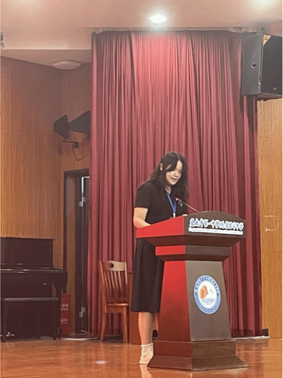 文学院实习队队长刘静代表学生发言。她以坚定的语气表达了实习生们的决心和目标,表示将珍惜这次宝贵的实习机会,虚心向指导教师学习,努力提升自己的教学能力。同时承诺全体实习生将以饱满的热情和高度的责任感投入到实习工作中去,积极参与学校的各项教育教学活动。