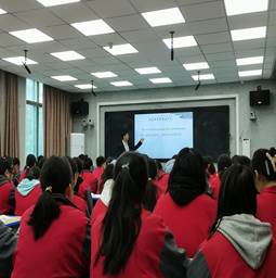 早上八点娄底市第一职业中学副校长成选文亲临现场,学校教务科领导,和今年会文学院实习队带队老师周良娥、易宋江,合同各班语文指导老师和评委悉数到场,开启最后三位实习老师的教学比武课。
