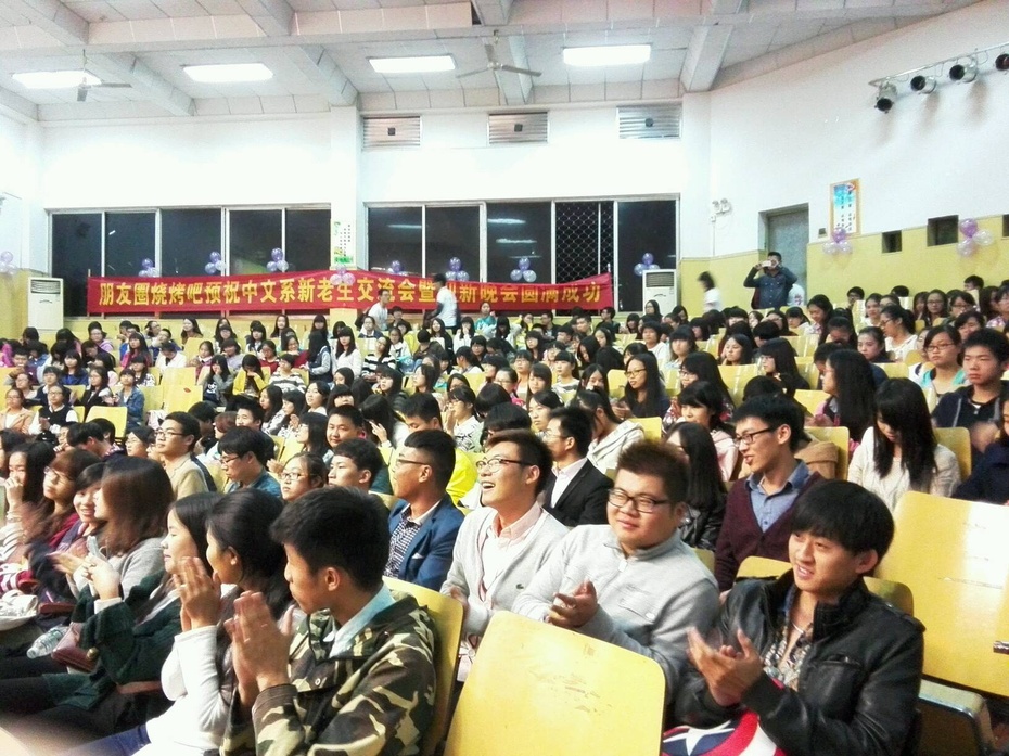 2014年11月4日19:30,由中文系学生会学习部主办的中文系2014级新老生交流会暨迎新晚会在匠成楼报告厅隆重举行。中文系党总支书记黄立平教授、党总支副书记刘道锋博士、牛津老师、叶红老师出席了此次晚会,院学生会主席团、各系学生会分会主席、院系学生会学习部长以及我系14级新生共同参与了此次晚会。