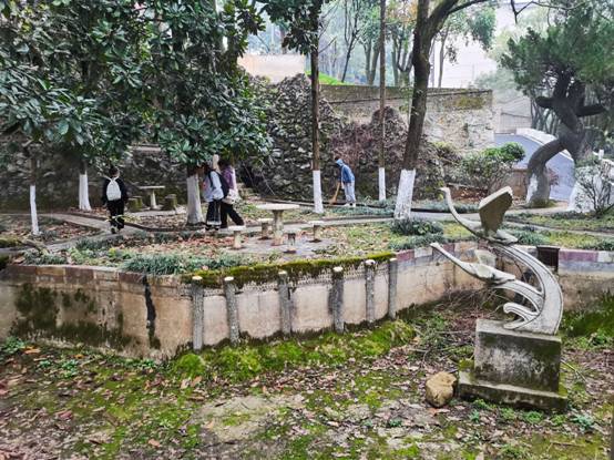 活动已有一月有余,在同学们的积极参与下,花田始终干净整洁。映入眼帘的是肆意盎然的兰草,是色彩斑斓的樟叶,是缄默的石亭。樟叶虽美,但落在石板路上,会驱除石板路的静;枯枝别有一种姿态,但落在草丛中,会打扰草丛的净。