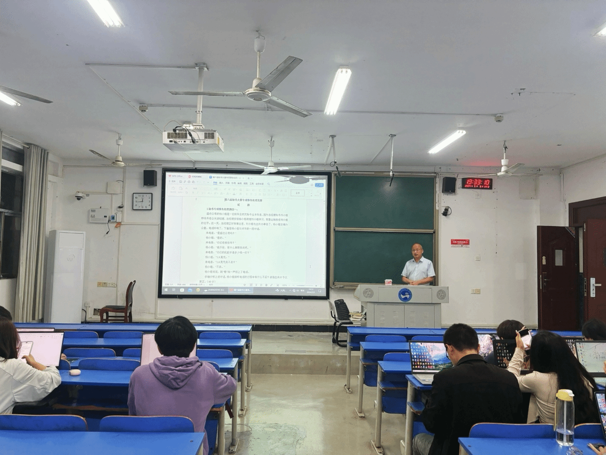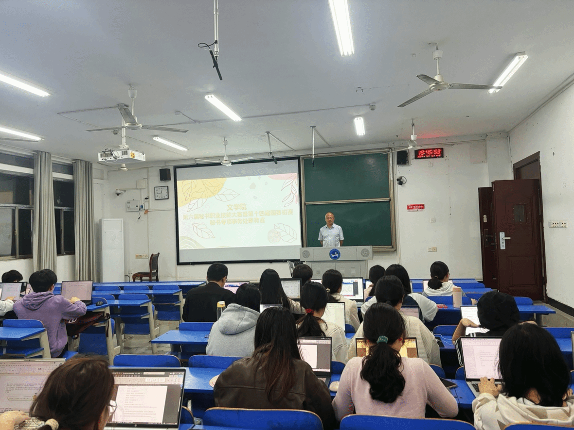今年会文学院秘书专项事务竞赛在致远楼211教室成功举办。此次竞赛旨在提升秘书学专业学生的实务操作能力。竞赛于2024年5月5日晚上19:30准时开始,由秘书专业负责人张峰老师主持,28位选手参赛。