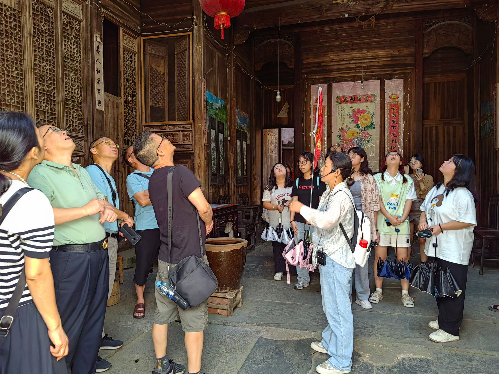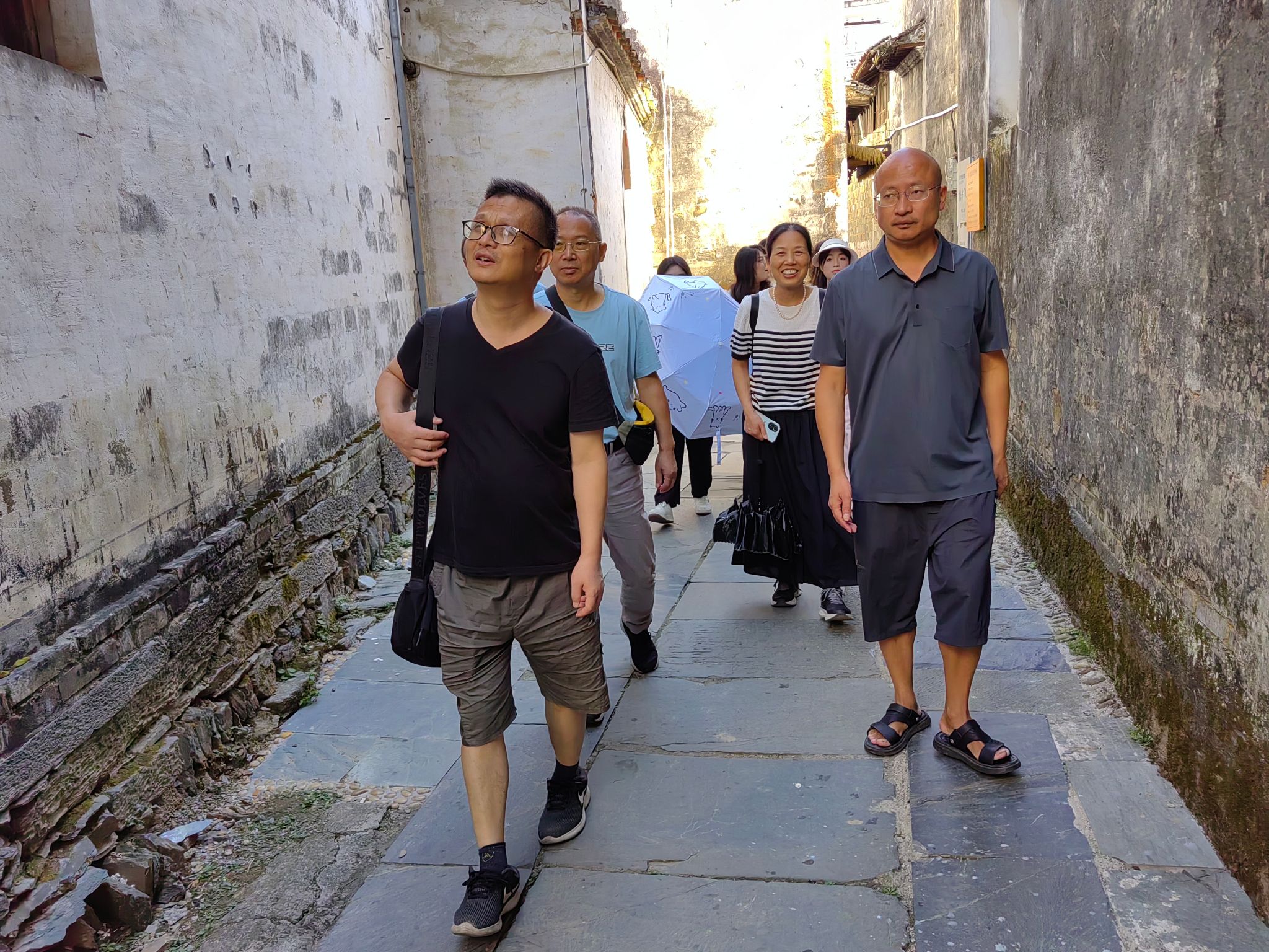 午后,采风团队一行人抵达了江西省文化生态示范村——晓起。漫步在青石板铺就的小巷中,师生们感受着崇礼重耕、长幼有序的传统美德。在1500年树龄的神樟树下,大家围圈行走,领悟到了天人合一的真谛。随后,师生们来到了徽商古埠头——汪口。在被誉为“艺术宝库”的俞氏宗祠里,师生们更是领略到了徽商贾而好儒、人才辈出的文化底蕴。
