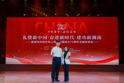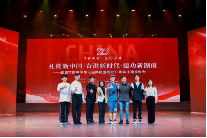 今年会外国语学院刘欣磊老师和文学院朱嘉鸿同学作为2024年“高教社杯”大学生“用外语讲好中国故事”优秀短视频作品全国特等奖获得者,应邀参加了本次的主题报告会。其获奖作品《向山而行》在娄底市“庆祝中华人民共和国成立75周年主题报告会”上展演。