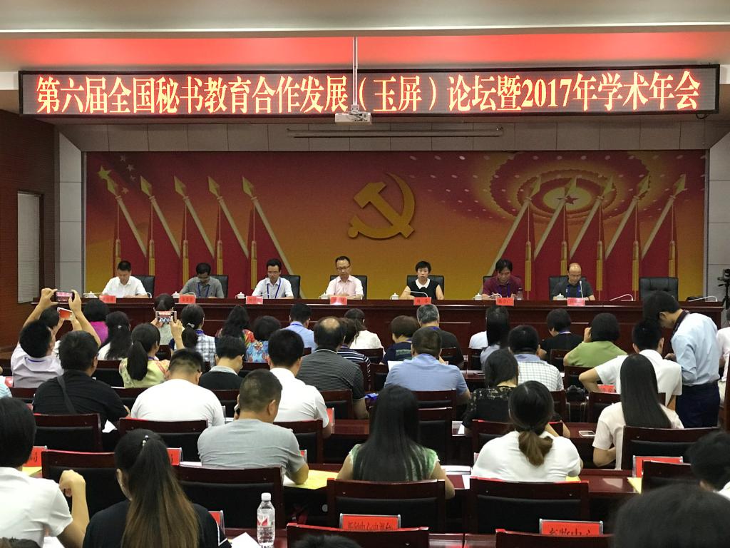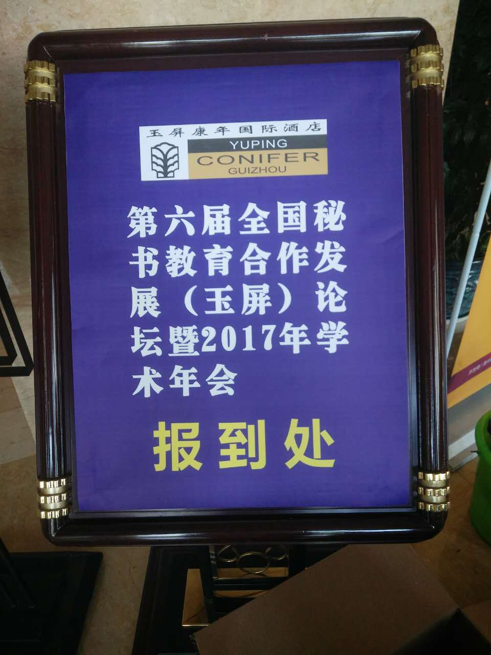 为了深入推进秘书专业建设,助推秘书学专业教学研究与改革,提高秘书学专业人才培养质量,使秘书学专业能更好地为地方经济社会的发展服务,由商务部中国对外贸易经济合作企业协会全国外经贸从业人员考试中心、中国职业技术教育学会国际商务教育委员会主办的第六届秘书教育合作发展论坛暨2017年学术年会7月29—30日在贵州玉屏侗族自治县隆重举行。商务部中国对外贸易经济合作企业协会副会长、全国外经贸从业人员考试中心主任郑樑、玉屏侗族自治县人民政府副县长姚芬、玉屏侗族自治县相关领导、来自全国各院校秘书专业的负责人和骨干教师60多人参加了此次盛会。