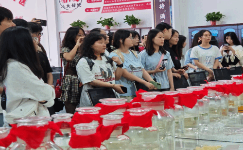 在访问的过程中,学生们在贵州联营酱酒集团市场部总监、商学院负责人卢志兵的带领下,详细了解了酱酒从原料选择、酿造过程到产品包装的整个生产流程。卢总特别介绍了公司在调酒、窖藏和包装方面提供的全流程个性化定制服务,这一特色服务极大地吸引了学生们的兴趣。此外,学生们还亲自品尝了酱酒,进一步增加对酿酒工艺的了解。