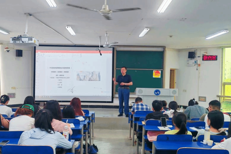 随着文学院2024年秘书学专业实践教学周系列活动的推进,6月19日早上,文学院党总支书记尹钟宏为秘书学专业的同学们带来了一场主题为《演讲出彩之道》的精彩讲座,分享了他对演讲艺术的独到见解和宝贵经验。