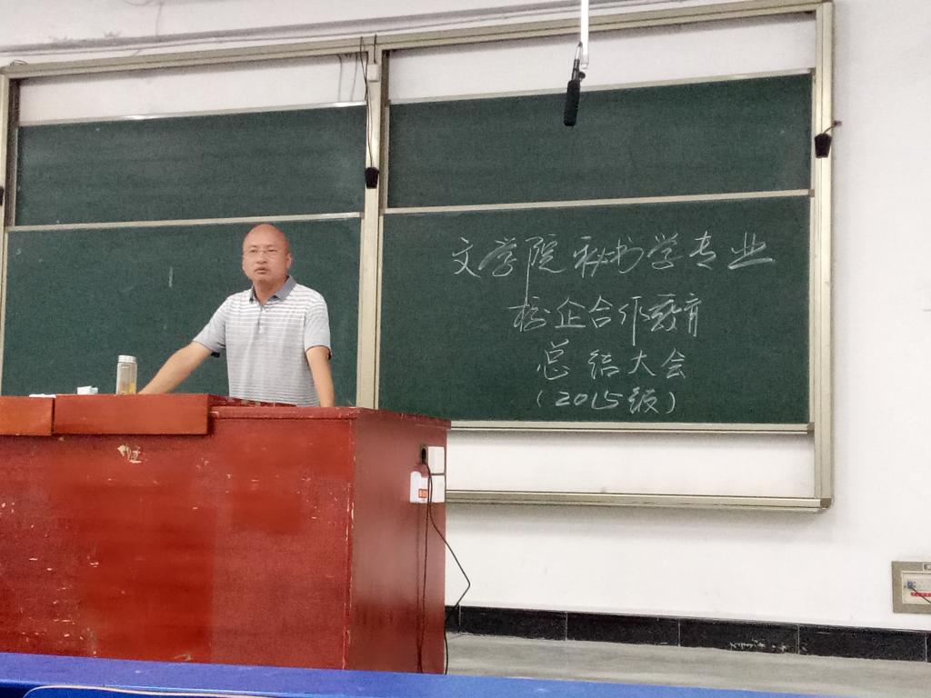 2018年6月19日晚7点半,15级秘书学专业校企合作教育总结大会在致远楼219教室召开,本次会议由秘书学教研室主任张峰主持,两班班委协助组织与管理。在各与会人员的积极参与下,大会取得圆满成功。