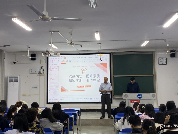 2023年5月23日晚上7点半,文学院邀请娄底市娄星区委办副主任、档案局长(兼)邹雄枫为秘书学专业学生带来“练好内功,提升素质,脚踏实地,仰望星空”主题讲座。本次讲座在致远楼308教室进行,由文学院秘书学专业负责人张峰副教授主持,秘书专业2021级、2022级全体学生听取了本次讲座。