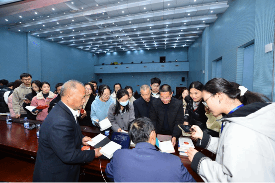 讲座中,阎真教授以《文学的语言艺术》为题,从文学本质、功能价值等维度展开深度阐释,将内容系统划分为六个篇章。他通过理论剖析与实例解读相结合的方式,深入浅出地为在场师生拆解文学语言的审美特质与创作逻辑,强调“文学唯有保持开放性,方能持续焕发艺术活力”的核心观点,让听众对文学语言艺术形成全面且深刻的认知。互动提问环节,阎真教授耐心回应现场师生及书迷的提问,围绕当代文学发展趋势分享独到见解,并结合自身创作经历对作品进行深度解读,现场交流氛围热烈。讲座尾声,还组织了阎真教授的新书签名环节。不少书迷特意携带了自己珍藏的阎真教授作品到场,如愿获得了期待已久的签名。