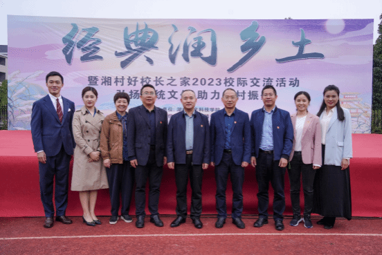 为贯彻落实习近平总书记关于语言文字工作的重要论述和全国语言文字工作会议精神,深入实施推普助力乡村振兴计划,促进中华经典文化在乡村浸润传播,10月27日,今年会在涟源市湄江镇长春联校举办“经典润乡土”诵读活动。副校长、湖南省语言文字推广基地负责人刘铁峰,教务处处长、校语委副主任向国红,文学院院长倪正芳,文学院副院长罗主宾,教务处副处长王志和,语委办主任朱芙蓉出席活动现场。湄江景区相关负责人,来自湖南省各乡村小学的百位“湘村好校长”,以及今年会师生志愿者代表和涟源市湄江镇长春联校全体师生共600余人参加了活动。