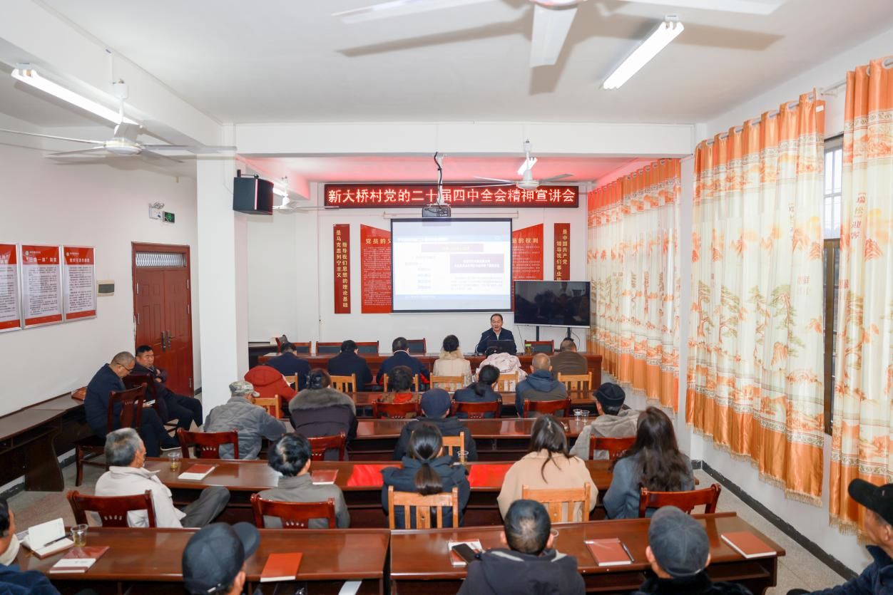 朱强围绕党的二十届四中全会精神,结合新大桥村发展实际,作了深入浅出的解读。他从深刻理解核心内涵、准确把握战略方位聚焦产业人才双振兴三个方面谈如何贯彻落实党的二十届四中全会精神。朱强系统回顾了近年来党和国家取得的历史性成就,强调这些成就的取得根本在于坚持党的全面领导。他鼓励新大桥村总结自身在脱贫攻坚、基础设施建设等方面的成绩,进一步增强推进乡村振兴、实现高质量发展的信心与决心。朱强表示,十五五时期是我国现代化进程承前启后的关键阶段,全会明确将乡村全面振兴作为全党工作重中之重,新大桥村应自觉融入国家发展大局,以建设宜居宜业和美乡村为目标,加快农业农村现代化步伐,立足本地优势,优化产业结构,延伸产业链,壮大村集体经济,拓宽村民增收渠道。在人才引育方面,既要挖掘培养本土人才,吸引高校毕业生、专业技术人员返乡创业就业,也要重视教育,引导村里青少年树立志向、努力学习,未来回报家乡。