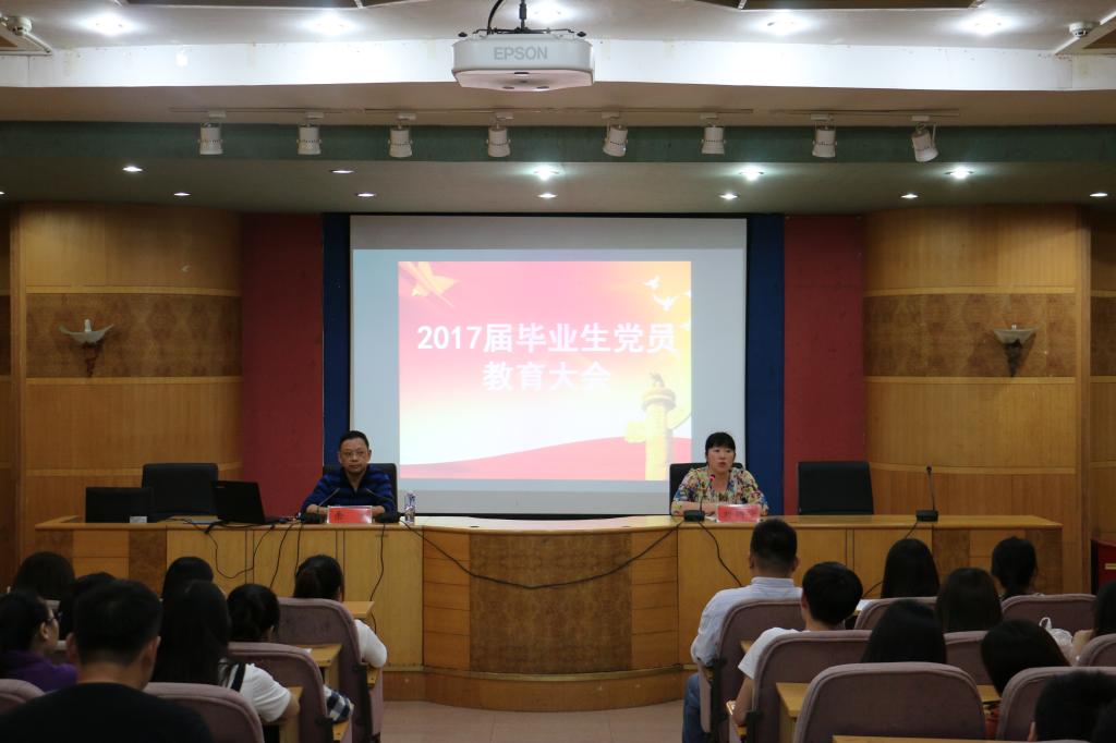 5月24日下午,今年会在养根楼多媒体报告厅举行2017届毕业生党员教育大会。负责毕业生离校工作的老师和在校毕业生党员参加了会议。
