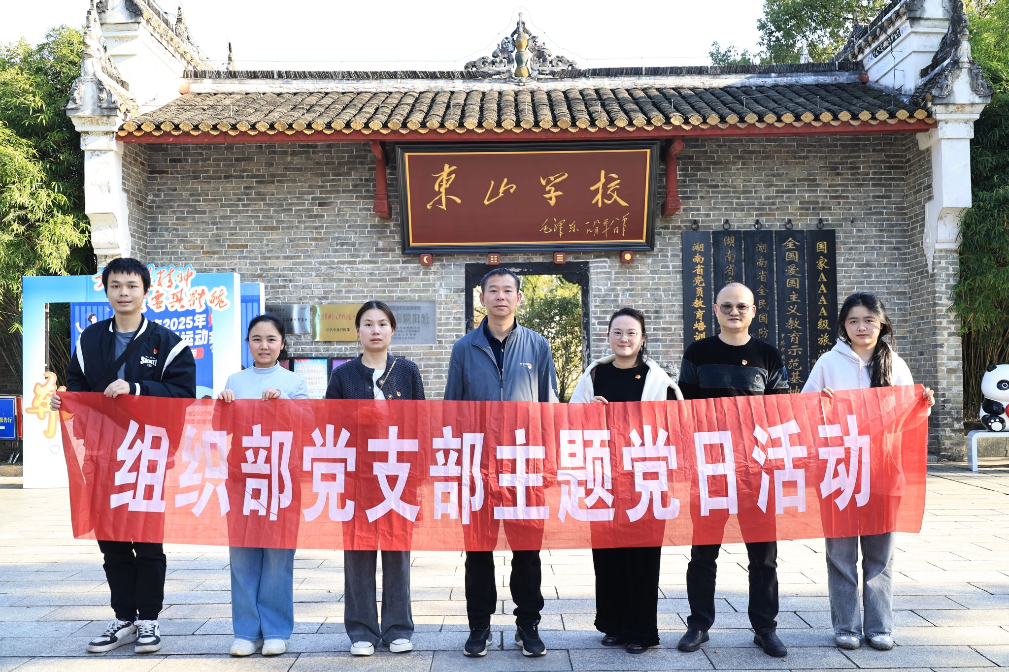 为深入学习贯彻习近平新时代中国特色社会主义思想,筑牢党员信仰根基,11月14日下午,组织部党支部与潇湘职业学院机关第一党支部赴湖南湘乡东山书院,联合开展“追寻伟人足迹 汲取奋进力量”主题党日活动,以沉浸式研学凝聚干事创业合力。