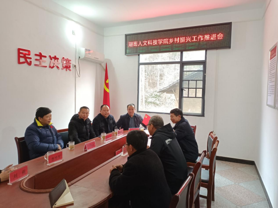 随后,刘和云一行在该村党群服务中心与村支两委和工作队进行了座谈。工作队与村支两委分别向与会人员进行了工作汇报。刘和云对工作队取得的成绩表示充分肯定并指出,2023年全面贯彻落实党的二十大精神的开局之年,工作队要以习近平总书记关于“三农工作”的重要论述为指引,牢记初心使命,甩开膀子加油干,推进乡村振兴不断取得新进展。他要求工作队要进一步团结群众,调动好人民群众自发参与乡村振兴建设的热情与积极性,努力把灌溪村建设得更加美好,力争成为娄底示范驻村帮扶工作队。他表示学校将一如既往地关心与支持村里乡村振兴事业,加大帮扶力度,学校工会教职工福利物资采购会重点向村里倾斜,并积极为村里协调争取项目支持,确保灌溪乡村振兴事业高质量向前发展。