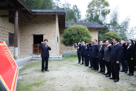 刘和云带领党委理论学习中心组(扩大)成员在故居前重温入党誓词